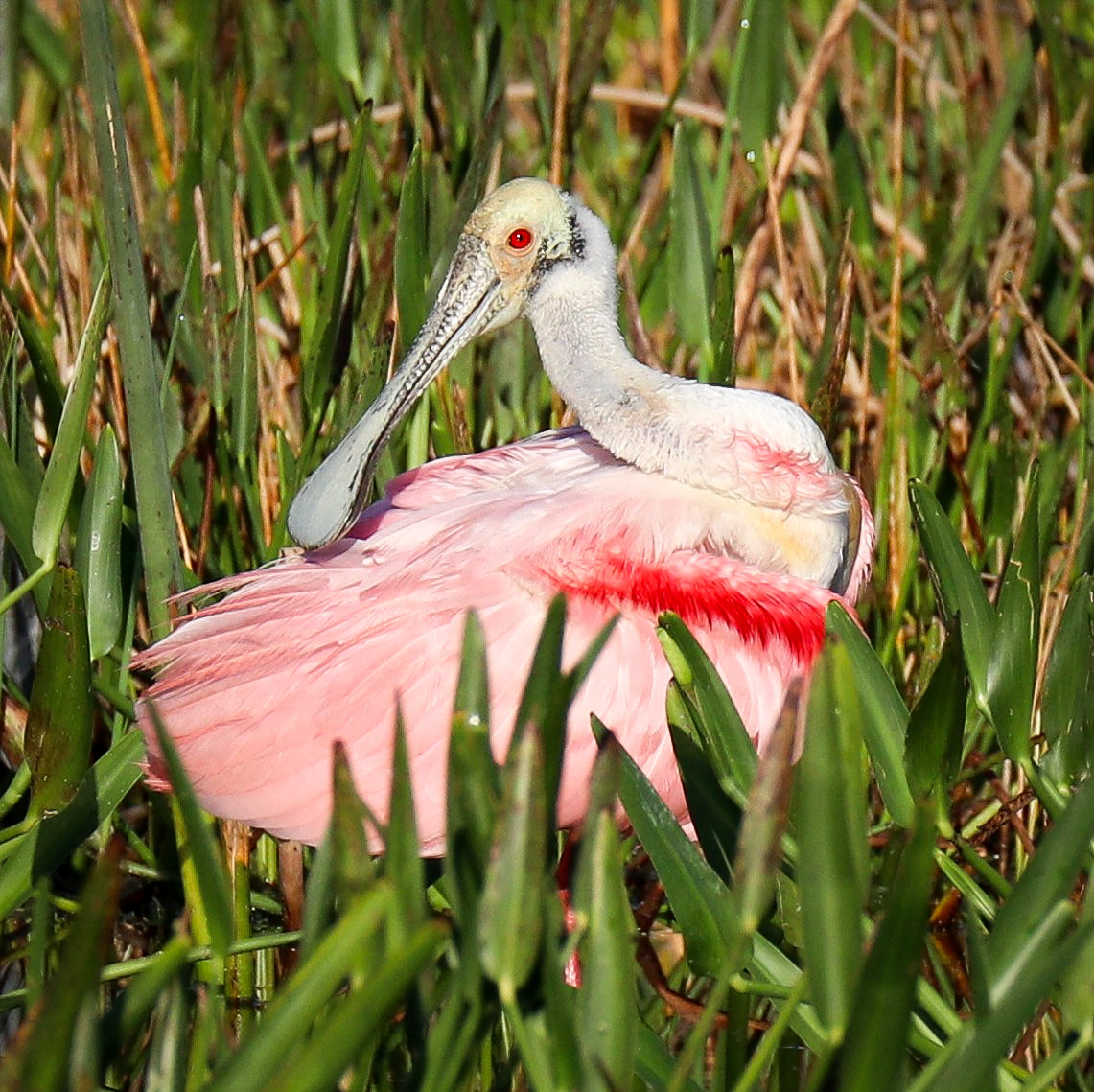 Trivia note: The pink eyes of the Spoonbill get pinker as they age.